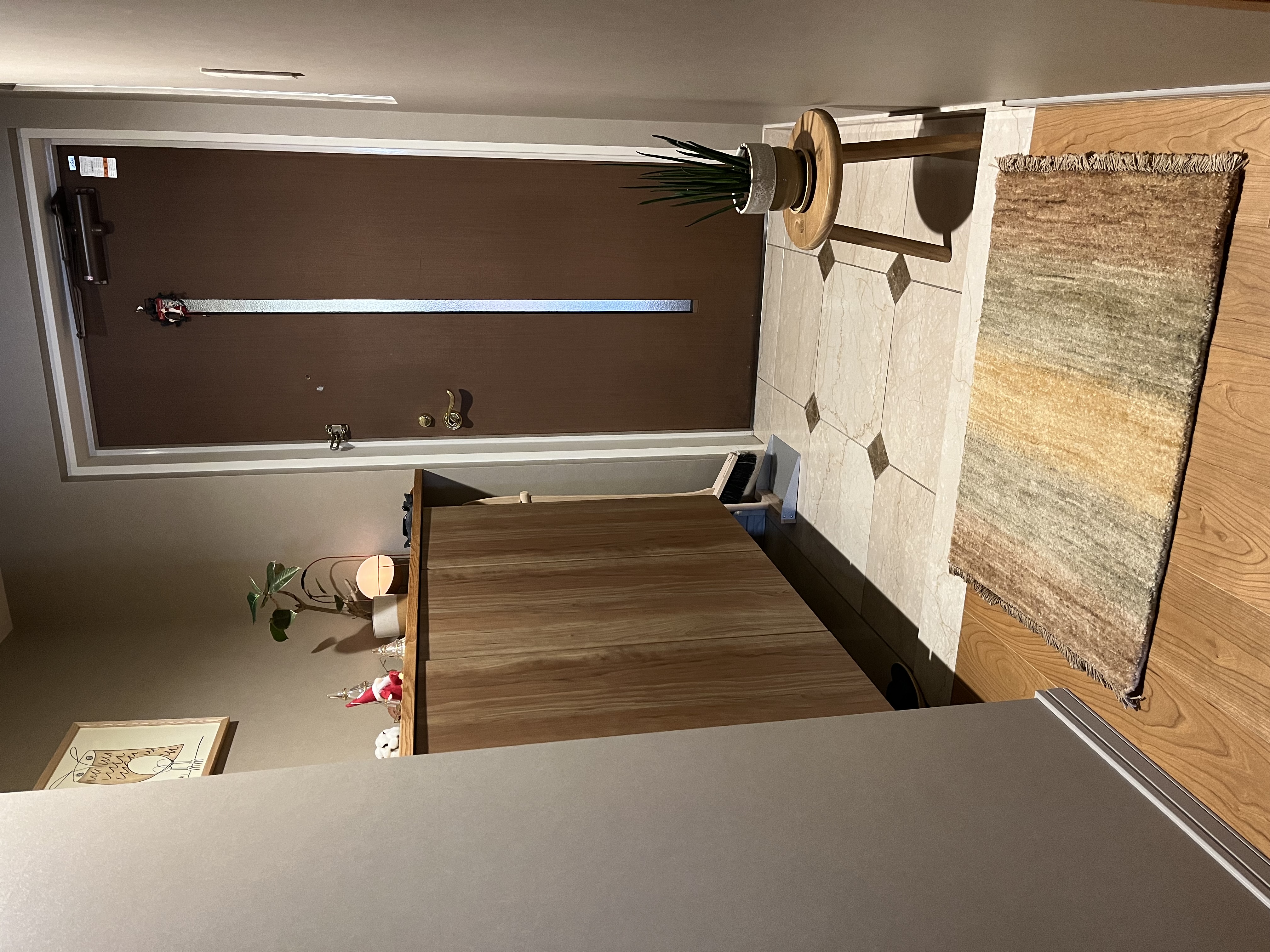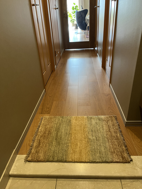 リビングのギャッベが引き立つように模様替えもされたのですね。玄関の空間も素敵に飾られているので、インテリアがお好きなのが写真からも伝わってきます!今回選んでいただいたハグみじゅうたんは【ており】シリーズなので、手結びで織り上げられた毛足に方向があり、見る向きによって見え方が変わります。敷く向きや敷く場所を変えたりしながら、これからもハグみじゅうたんのある暮らしをお楽しみください。
