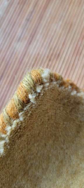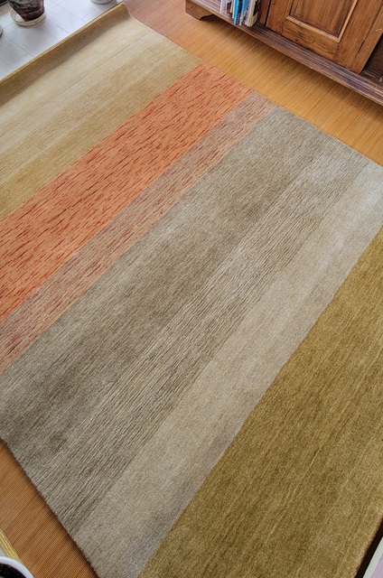 大阪の高島屋の催事で、出会いました。よく行く、天神橋筋商店街のインテリアショップでも販売していると、知り。迷いなく購入を決めました。そもそも、ギャッベを探していて、タイミングもあったので。日本のもの、年齢があがるたび、興味もわき。このたび、購入したじゅうたんは、田園風景を思いだし、見ているだけで癒されます。2ヶ月待って今日、届いたばかりなのでとても興奮しています。フカフカで目線も高くなった気分(笑)素足がとても、気持ちいいです。ハシッコのステッチとても可愛くて、楽しい気分になります。素敵な、じゅうたんありがとうございます。