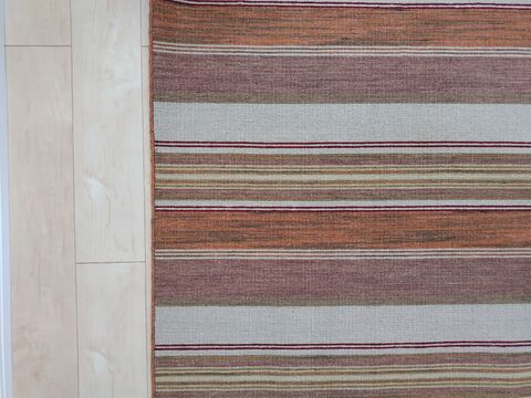 今回選んでいただいた【リバーシブル・ストライプ】シリーズは、平織りなのでほかのシリーズに比べると厚みは薄くなりますが、【てざわり】【ており】シリーズと同様に素材がウールなので、N様がおっしゃる通り保温性もあり、通年さらっと快適にお使いいただけます。また明るい色の床にアクセントにもなりつつ、派手になりすぎないので、どんな空間にも馴染みますね。これからもハグみじゅうたんのある暮らしを存分にお楽しみいただければ幸いです。