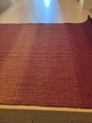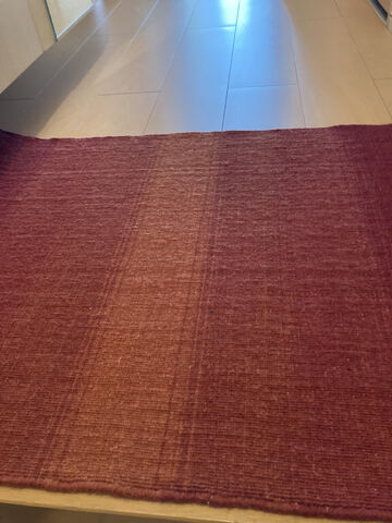 赤系のウールのラグがなかなか見つからなかったのに…ここにあった!と。