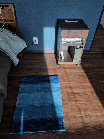 お家に帰ってきた時に目に入る暖かみのある色がとてもほっこりしますよね。ベッドサイドも、朝床に足をつける瞬間のあのヒヤッとした感覚が、マットを1枚敷くことでとても快適になるのも気持ちが良いですね!