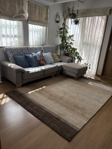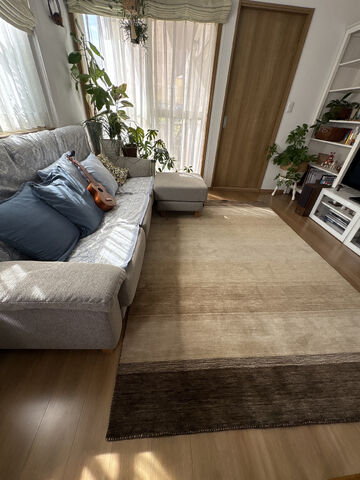 引っ越した当初は3人がけの大きなソファをじゅうたんの上に置いていたのですが、体全体でじゅうたんを楽しみたいと思い、ソファを処分しました。