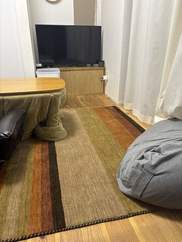 選んだ決め手は、色合いがフローリングの床、ソファを始めとした家具類と良く調和していたことです。