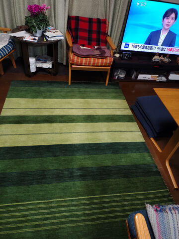 インテリアの差し色に 草原のような緑色 のシンプルなデザインのじゅうたんが欲しかったのと、