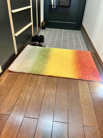 午前しか日光の入らないリビングなのでグラデーションレインボーの色に。リビングが明るくなりました。玄関マットもいつか購入したいと思っています!
