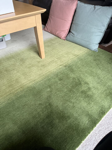 我が家の狭いリビングですが、敷いてみてしっくりきました。ソファーとも合っていて、よかったです。暖かく手触りもよく、ソファーよりじゅうたんに座る方が多くなっています。時折来る5歳と3歳の孫も寝転がって、とても気持ちよさそうです。