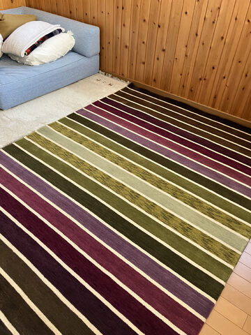 ウール素材なのに、本当に夏でも気持ちがいいの?と、使うまでは少し疑ってしまうと思いますが、実際に使っていただくと夏でも気持ちがいいことが実感できると思います!またお部屋がパッと明るくなる色合いに惹かれ即決していただけたとのこと。素敵なお部屋の一員としてハグみじゅうたんを選んでいただき、とっても嬉しいです。これからも見ても触れても楽しめるハグみじゅうたんと一緒に素敵な思い出をたくさん作ってください!