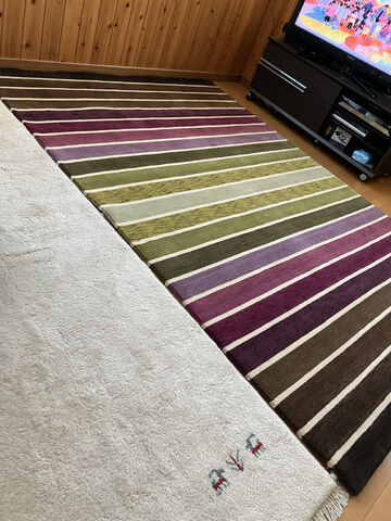 家具等すべてシンプルにしたので、これを敷いただけでパッと明るくなり、良い感じです。