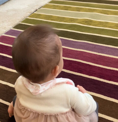明るい空間にハグみじゅうたんの彩りが映えるなか、堂々たる寝姿のお子様・・・なんて気持ち良さそうなんでしょう!
