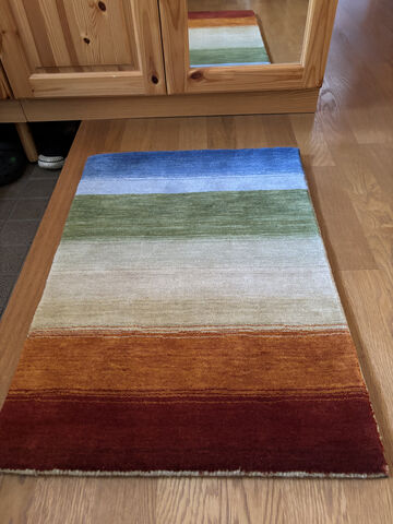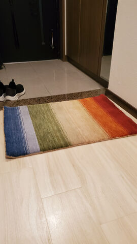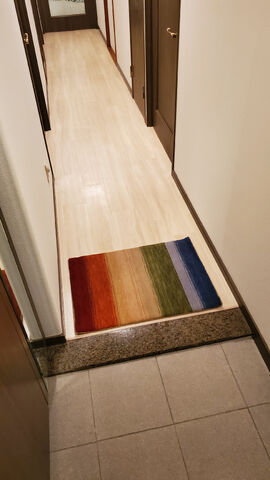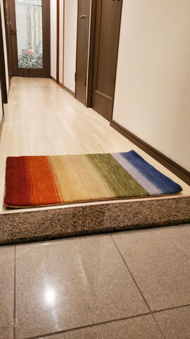 玄関の模様替えとともに、ハグみじゅうたんの優しいマルチカラーを長くお楽しんでいただけたらと思います。