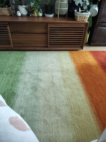 届いたラグはネットと同じく鮮やかな色彩で、でも派手すぎずリビングを明るくオシャレにしてくれました。