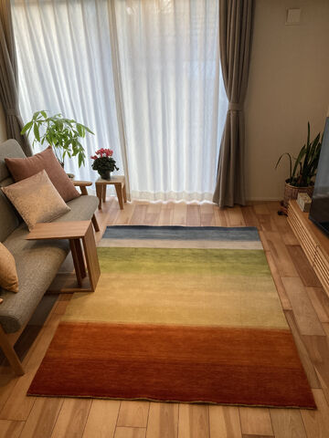 ハグみじゅうたんとギャッベを並べていることで、毎日のお出掛けや帰ってきた際にどちらの上にあがるかなど考えただけでも楽しくなりますね♪どちらも長く使えるものだと思いますので、経年変化と共に末永くお楽しみください!