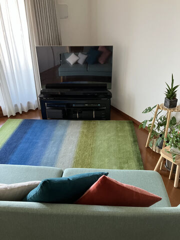もともと敷物に関してこだわりはありませんでしたが、テレビでギャッベの特集を見て天然ウールのじゅうたんに興味を持ちました。とにかく触ってみたくてインテリアショップに足を運び、そこでハグみじゅうたんに出会ったのがきっかけです。