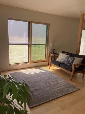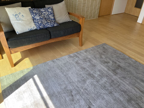 ナチュラルなお部屋の雰囲気に、ハグみじゅうたんがとっても合っていますね!てざわりプレーンシリーズは、色の濃淡のみで表現された無地のシリーズなので、ハグみじゅうたんの肌触りはそのままで、シンプルにお部屋にも合わせやすいです。素敵なソファもお持ちではありますが、ハグみじゅうたんの上でも座ったりゴロゴロしたりして、過ごしていただければ幸いです。