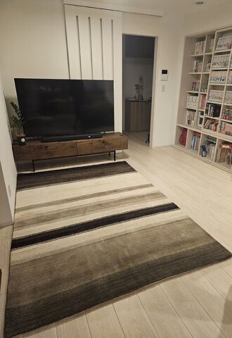 シックな雰囲気のお部屋に、【ておりセカンドコレクション】シリーズのHR4010がかっこよく馴染んでいますね!新たなペットを迎えたような気持になる。とのコメントもいただきましたが、本当に愛着を持っていただき家族のような気持で接していただいていると感じました。またお子様もじゅうたんの上で過ごす時間が増えたとのことで、とっても気に入っていただいているのが伝わってきます!これからもたくさんの時間を共に過ごしていただくことで、今よりもっと馴染み、本当に家族の一員としてたくさんの思い出を作っていただけたら、私たちも嬉しいです!