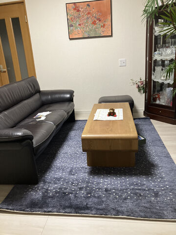 またハグみじゅうたんを気に入っていただき、大変光栄です。明るい床とのコントラストと重厚感のあるソファとの相性も良いですね!今回選んでいただいたHR4021はておりシリーズの中でも厚みのあるタイプなので踏み心地もいいですし、敷く向きによっても色の見え方も変わるので、様々な形でハグみじゅうたんをお楽しみいただければ幸いです。