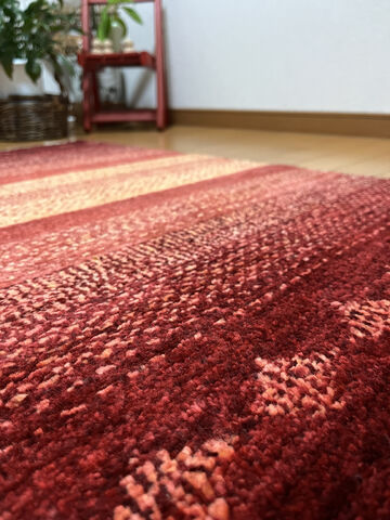 一日や季節の変化によって絨毯の表情が変わっていくのも、一つの醍醐味です。ぜひ赤色の美しいグラデーションがそっとM様の心に寄り添ってくれたら…と願っています。