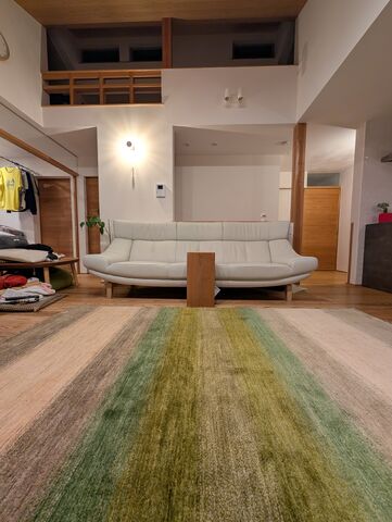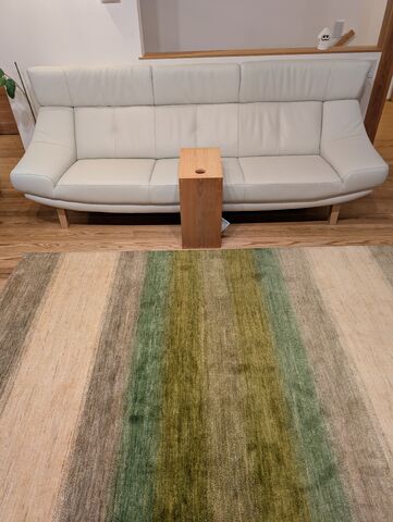 リビングだけでと思っていましたが、玄関マットにも惹かれてしまい思いきって購入。リビングは納品待ちですが、先に玄関マットが届きました。長く大事にお付き合いしたいなあと思います。色合いの柔らかさと光との変化、横のておりのフリフリもお気に入りポイント。
