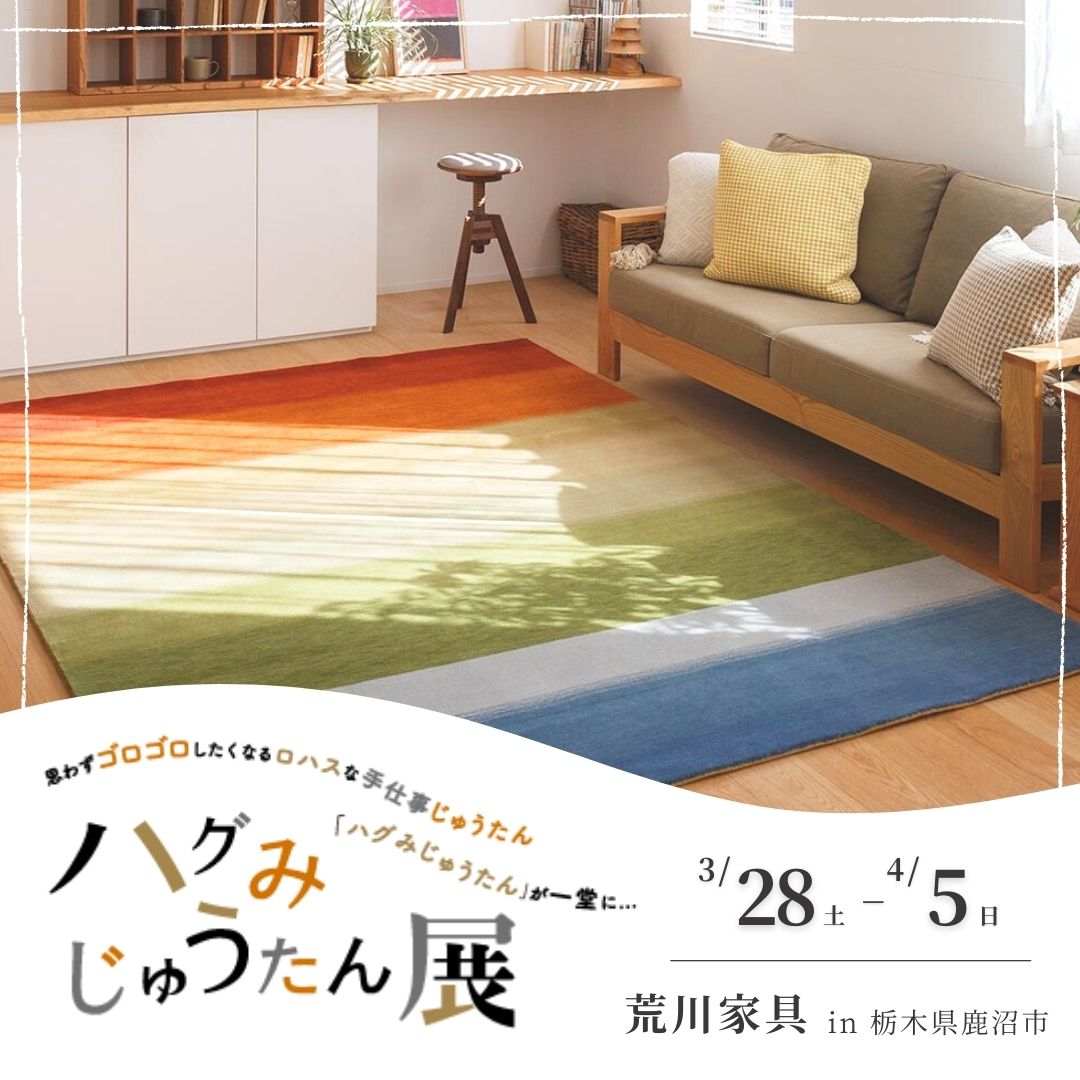 3/28(土)~4/5(日)栃木県鹿沼市の荒川家具にてハグみじゅうたん展開催!