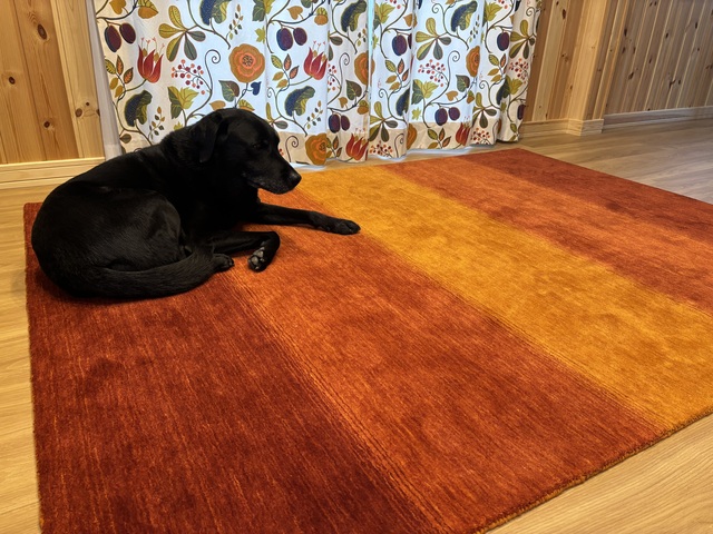 ギャッベを購入しようと探していた際にハグみ絨毯を見つけてこちらにしました!両面使えることや毛足がなくスッキリしたデザインも気に入りました。落ち着いた色合いでソファとの相性も良さそうです。我が家のワンコは敷いた瞬間に上で寝るほど気に入ったよう …続きを読む -