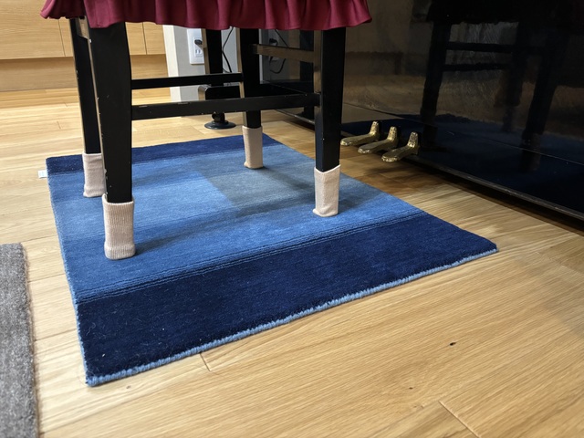 今回はリビングとピアノの椅子の下にそれぞれ選んでいただきましたが、インテリアに統一感があり素敵ですね。ご新居や家具などにもこだわりが感じられますが、そんなM様に一目ぼれしていただけたことは、大変光栄です。