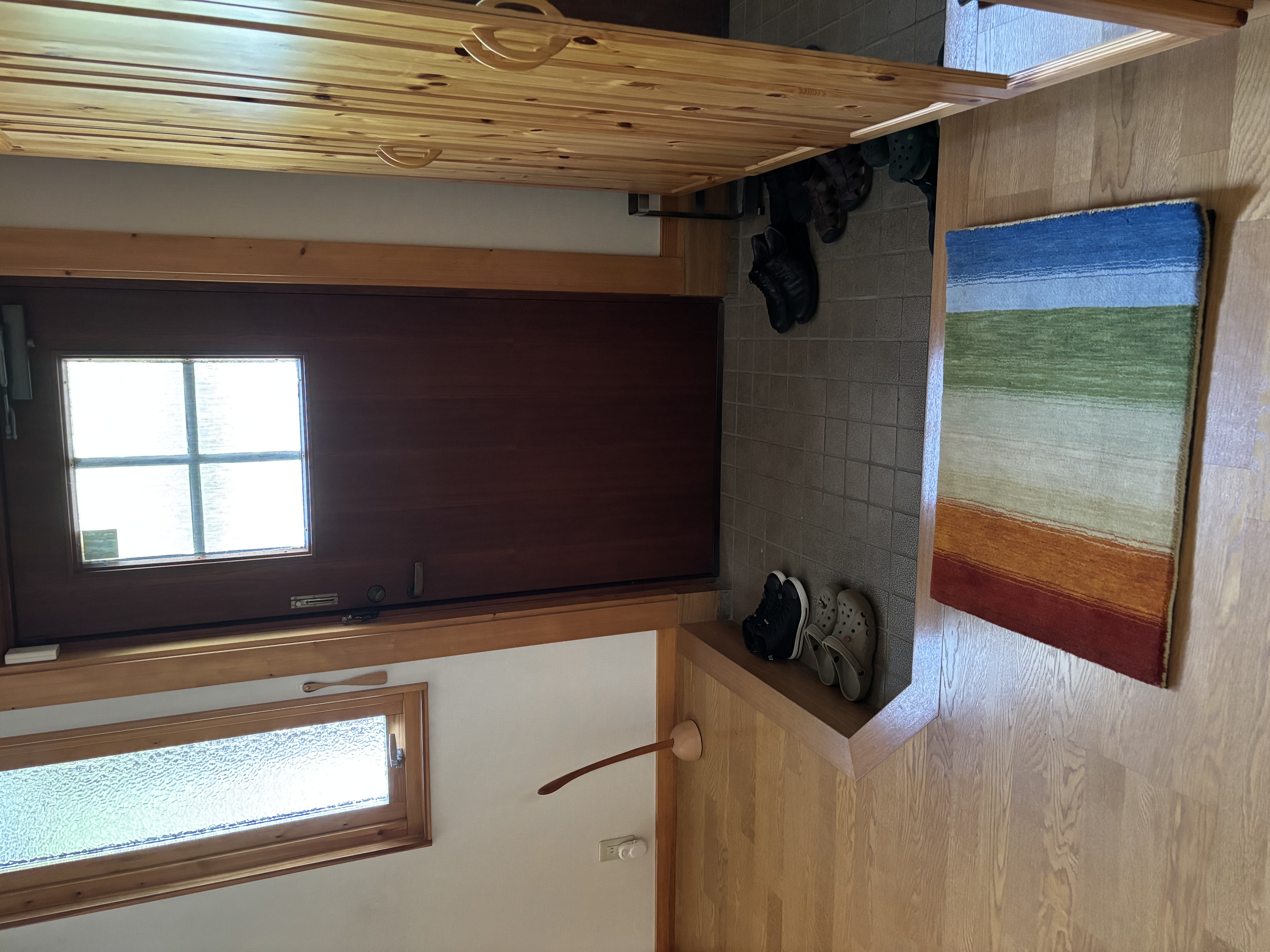 木をふんだんに使った玄関に、マルチカラーのハグみじゅうたんがとっても映えますね!てざわりシリーズは厚みもありふかふかしているので、踏み心地も良いです!ハグみじゅうたんに座って靴を履くなど、いろいろな形でハグみじゅうたんの心地よさを体感いただければ幸いです。