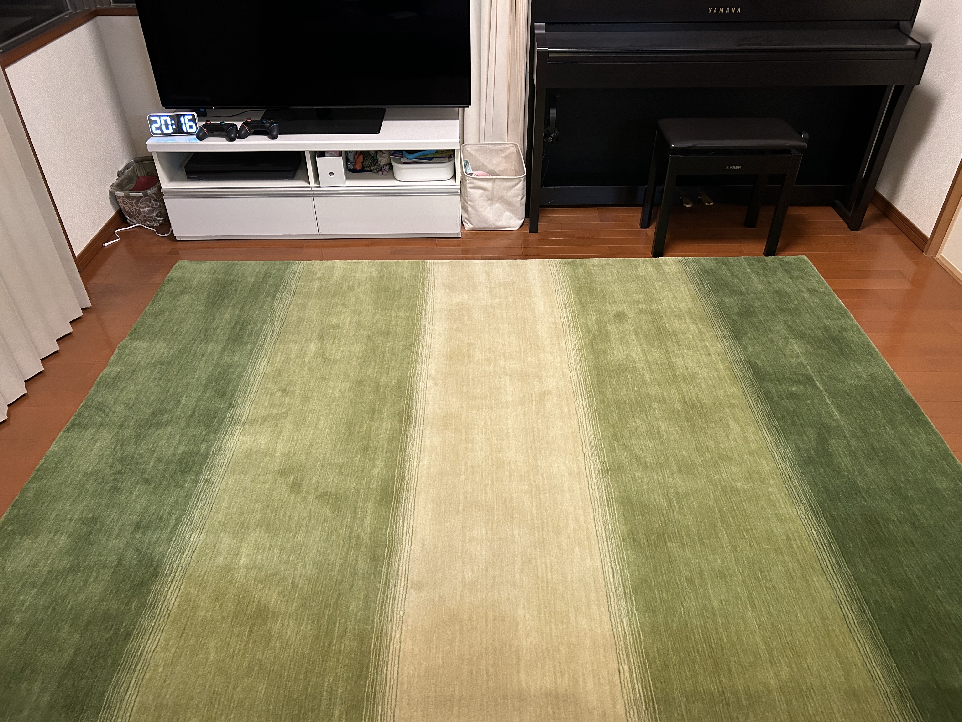 インターネットで家内が見つけ、都築区中川の店舗を訪問し、この絨毯を選んだ。床とコントラストがあり、気に入っている。 …続きを読む -