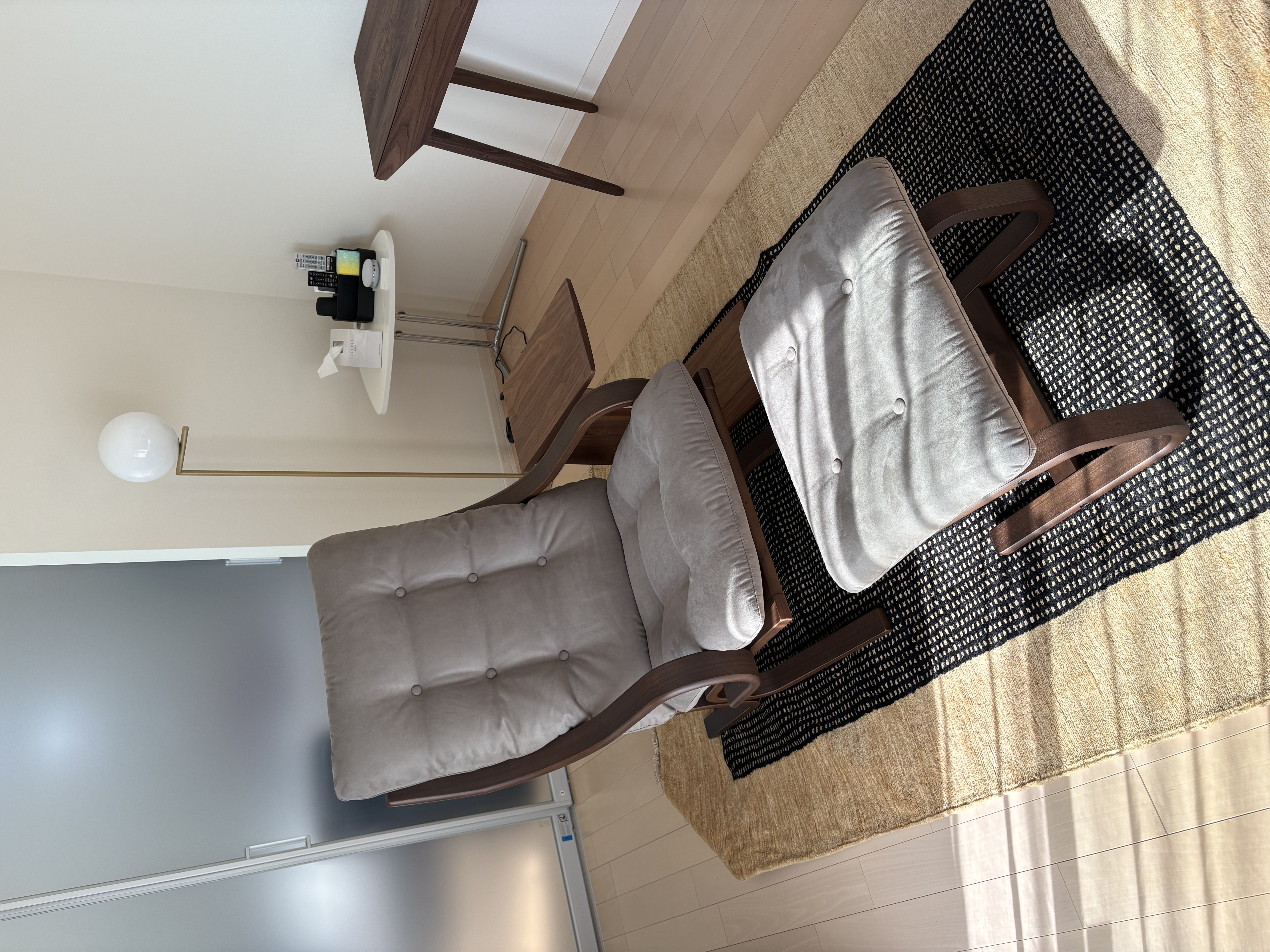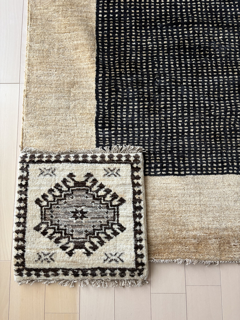 椅子の購入と一緒にハグみじゅうたんも決めていただいたとのことで、リラックスできる空間になっていて、とっても素敵ですね!ておりシリーズは手結びで織り上げていて肌触りもしっとりとなめらかですし、毛足に方向があるため敷く向きによって印象が変わります。たまに敷く向きを変えて気分転換しても楽しめそうですね。これからもハグみじゅうたんのある生活を存分にお楽しみください!