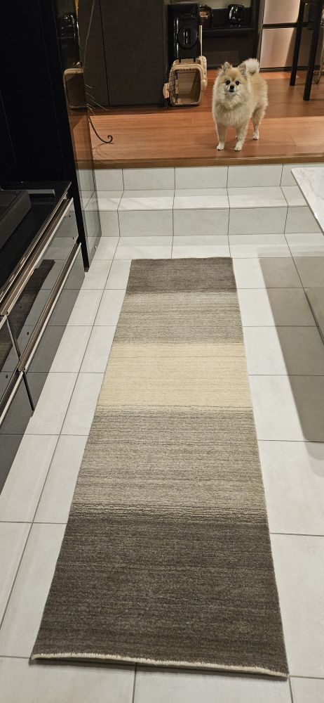床材がタイル仕様のためペットの足の負担軽減に絨毯の購入を検討していました。ダイニングからリビングの段差を飛び越えるので通路に置けるサイズを購入させて頂きました。