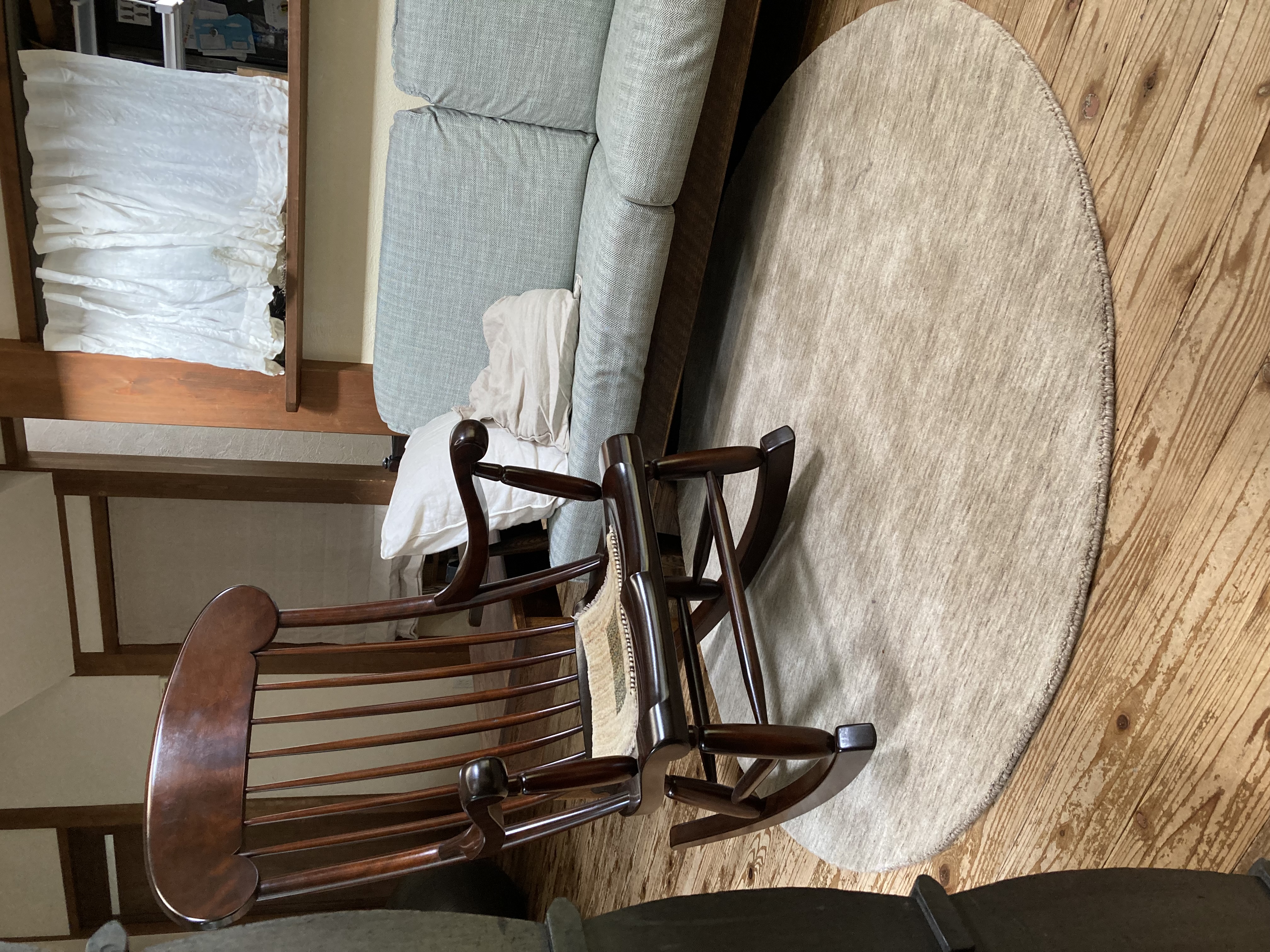 ロッキングチェアを迎えるにあたり、じゅうたんを選びました。ここちよい空間となりました。厚みがあり、へこみません。