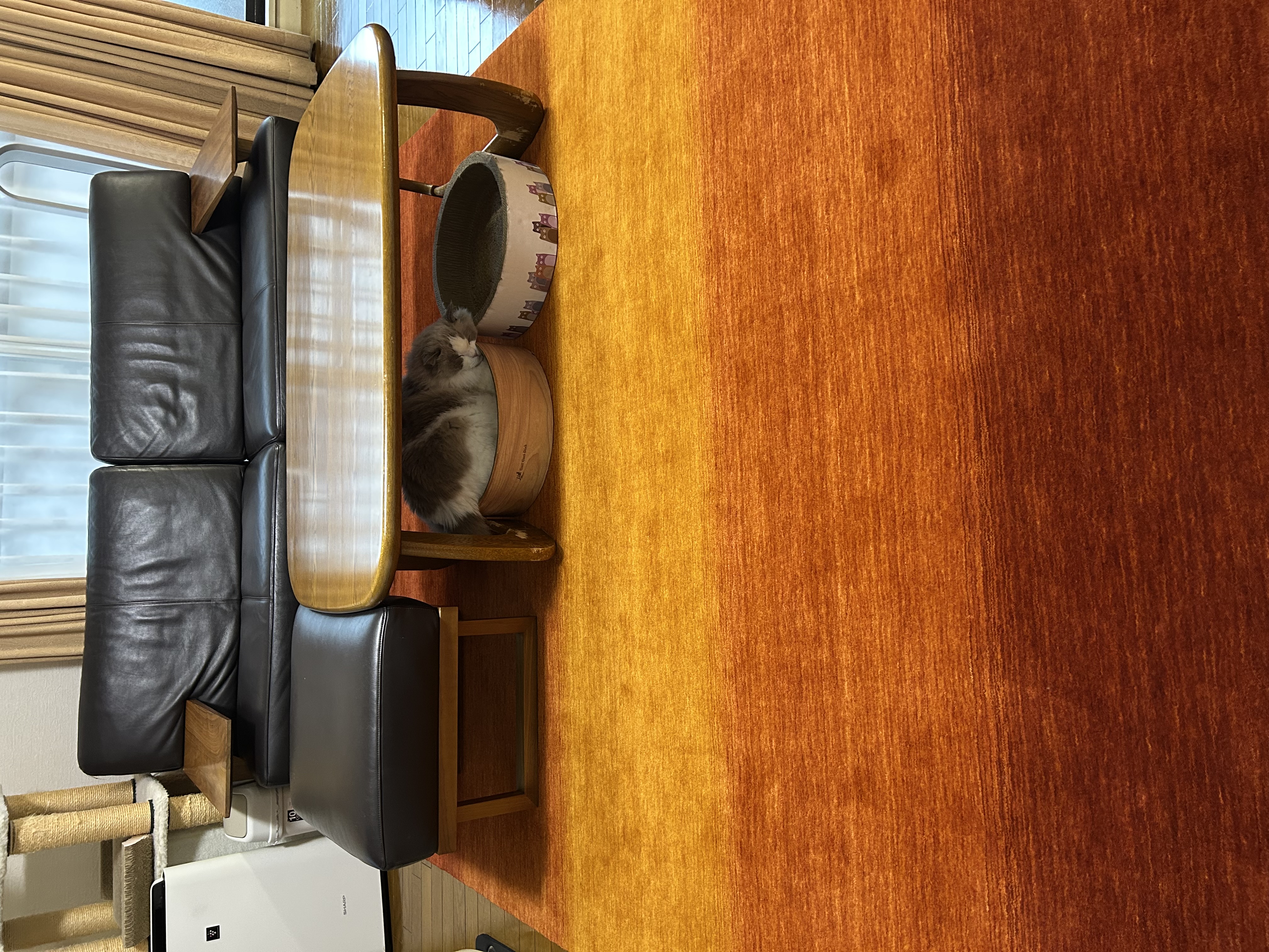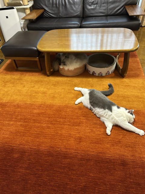 配置換えと同時にじゅうたんも変更されたとのことで、気分もだいぶ変わりそうですね!また猫ちゃんもハグみじゅうたんの上で、とってもリラックスして過ごしてくれているようで、何よりです!これからもハグみじゅうたんの上でたくさんの素敵な時間を過ごしていただけたら、私たちも大変光栄です。